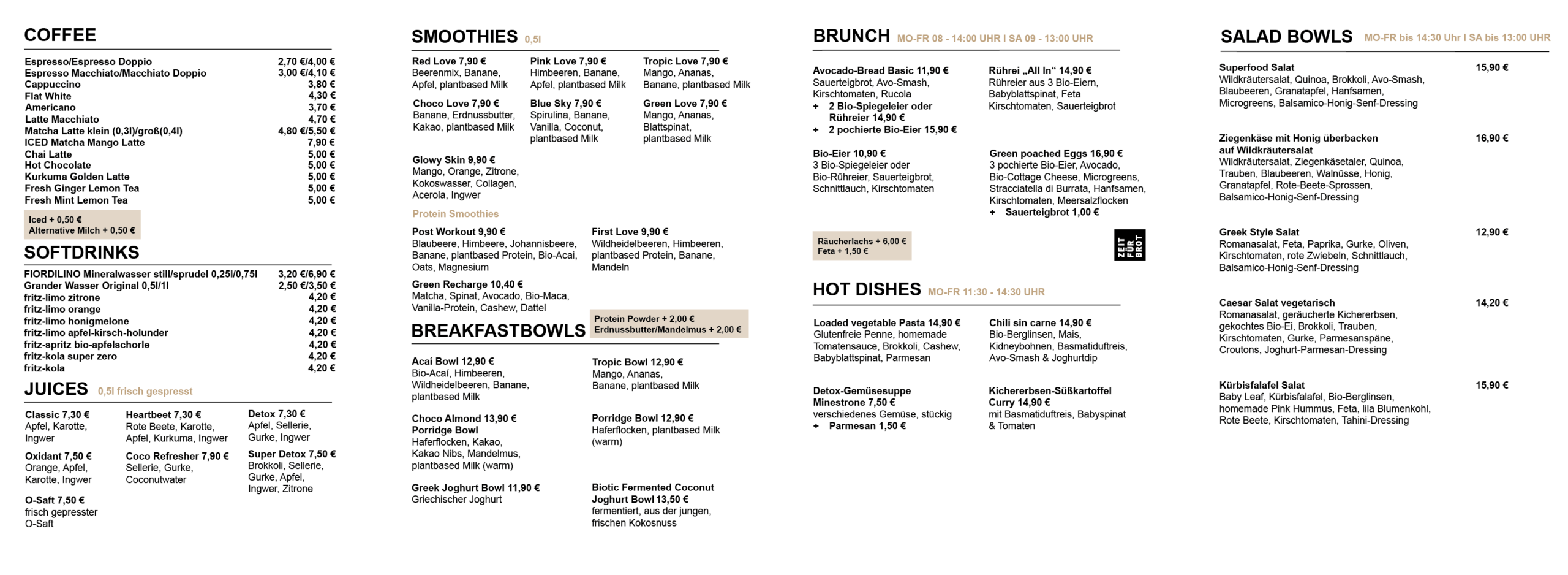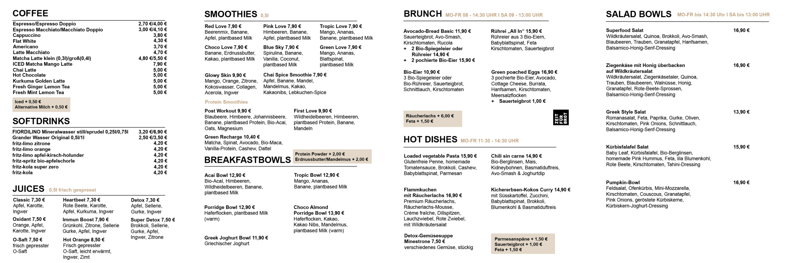 SMOOTHIES – BOWLS – JUICES – SALADS – CHANGING LUNCH MENUE – COFFEE – SWEETS