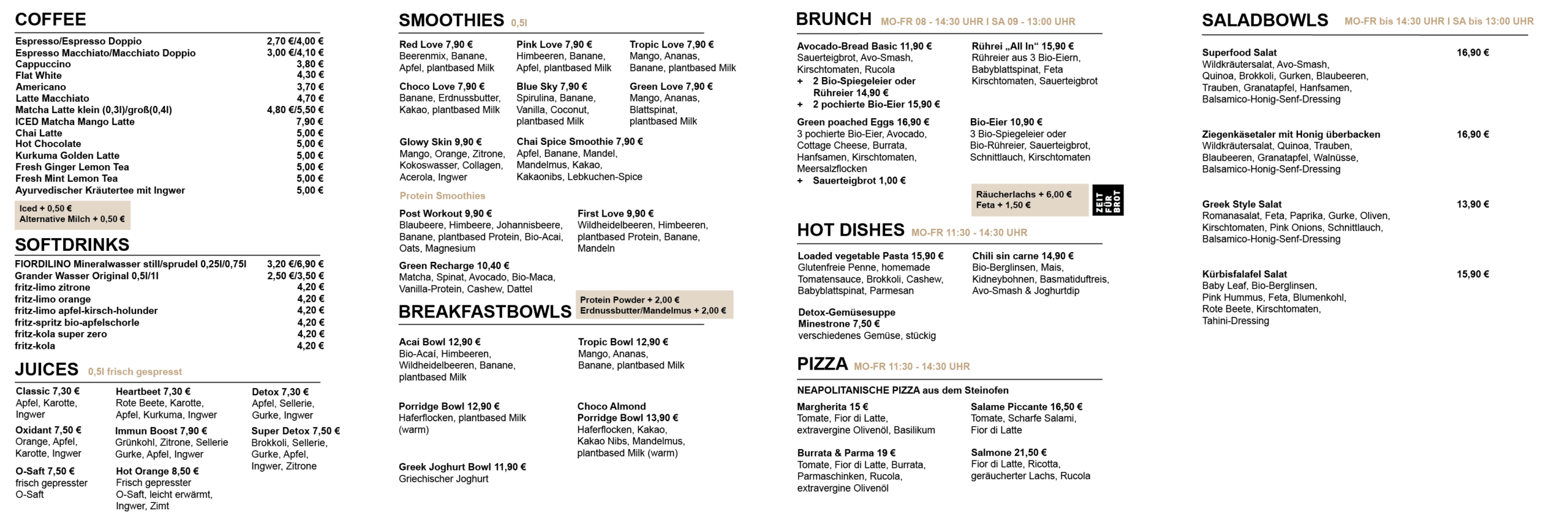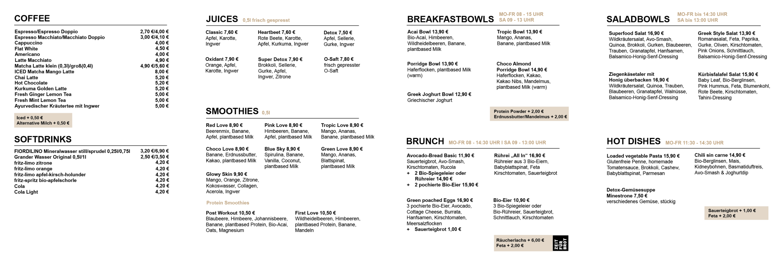 SMOOTHIES – BOWLS – JUICES – SALADS – CHANGING LUNCH MENUE – COFFEE – SWEETS